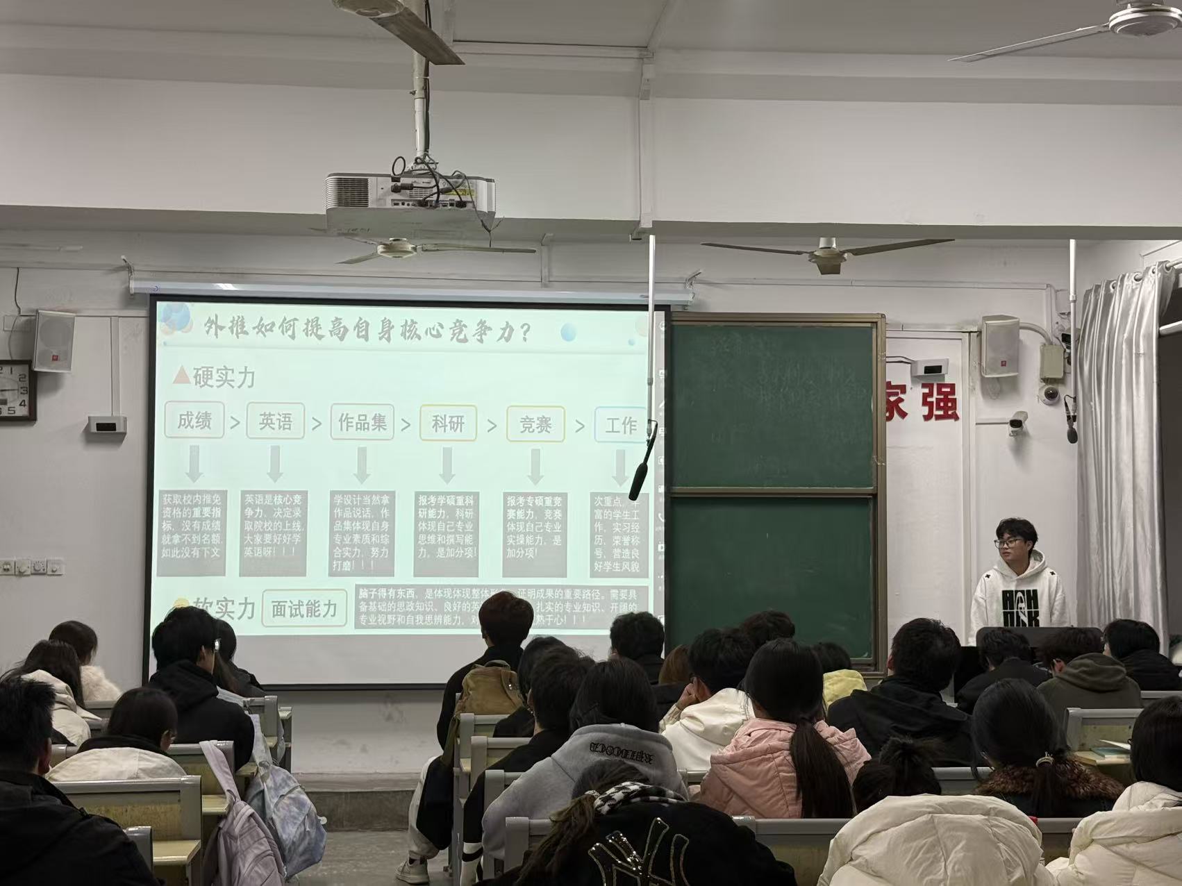 为帮助大一新生厘清保研认知、科学规划学业,10月20日晚,美术与设计学院在西校区七号楼101合堂举办保研经验分享会,特邀2022级环境与设计专业已成功保研的许原学长与2025级新生共同参加。
