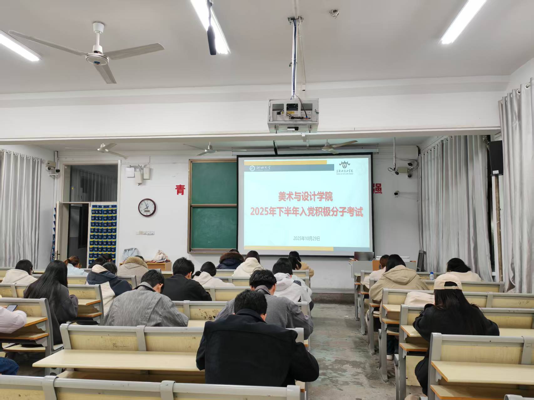 为强化入党积极分子队伍政治建设,检验其培训期间理论学习情况,切实筑牢党员发展“入口关”,10月29日,美术与设计学院于7号楼301合堂开展第三十一期入党积极分子培训班结业测试。