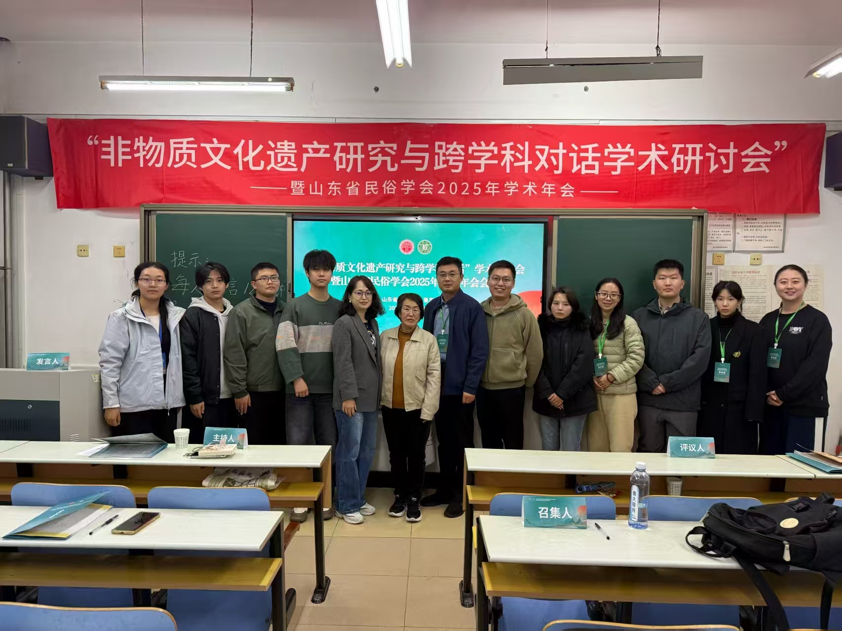 2025年11月8日,“非物质文化遗产研究与跨学科对话学术研讨会暨山东省民俗学会2025年学术年会”在烟台鲁东大学隆重召开。来自山东大学、中央民族大学、中国人民大学、辽宁大学等省内外多所高校的100余名民俗学及相关学科学者齐聚一堂,以学术为桥,共话非遗保护与文化传承新路径。我院张兆林教授、郑天一老师携硕士研究生贺新月、钱怡然、赵修怡受邀参会。