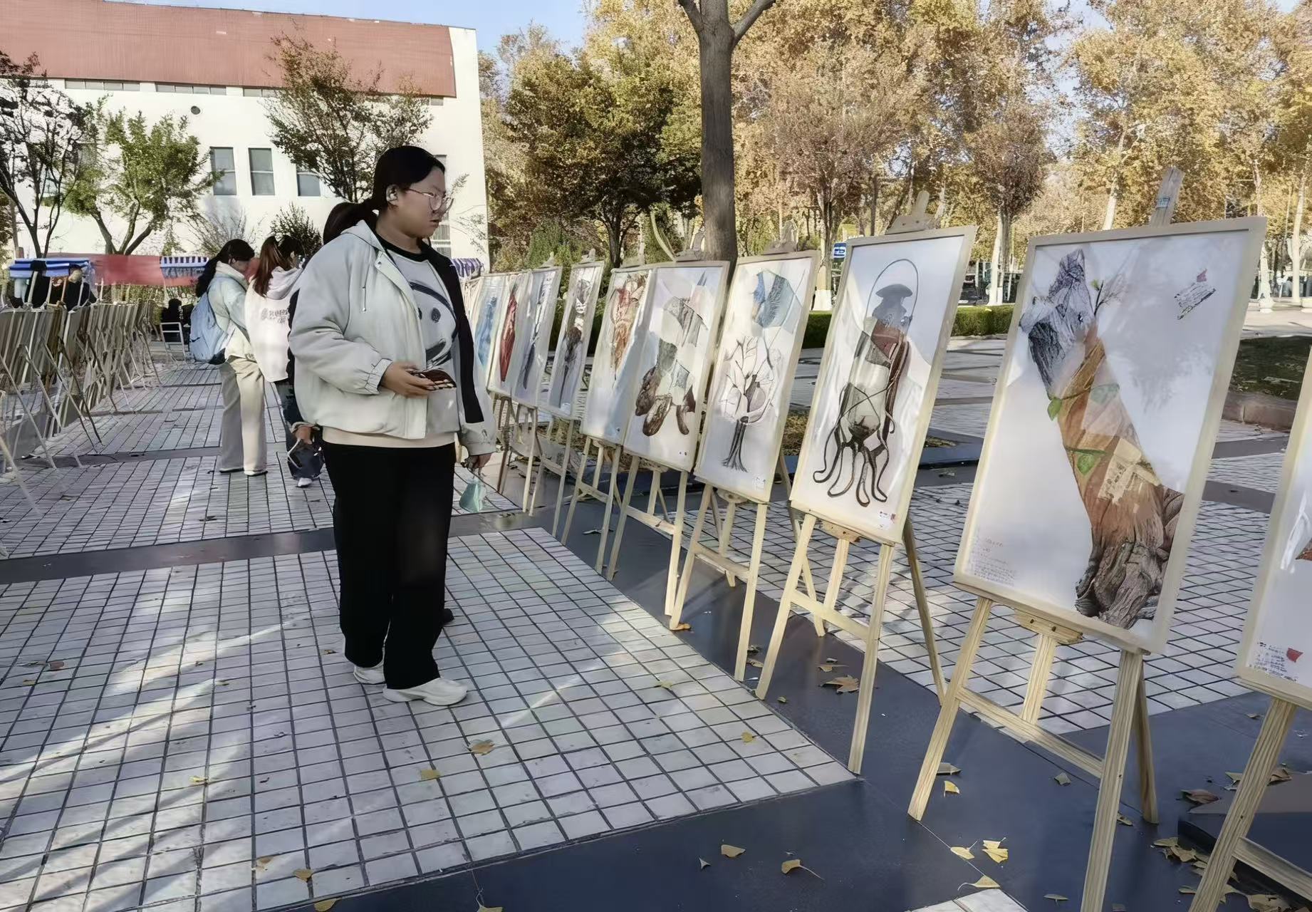 为集中呈现美术与设计学院学子专业实践成果,丰富校园文化生活,厚植艺术氛围,以艺术实践涵养优良学风,11月13日下午,美术与设计学院于星月广场举办第二十二期创意市集暨精微素描展,为同学们提供了沉浸式艺术的展示平台。