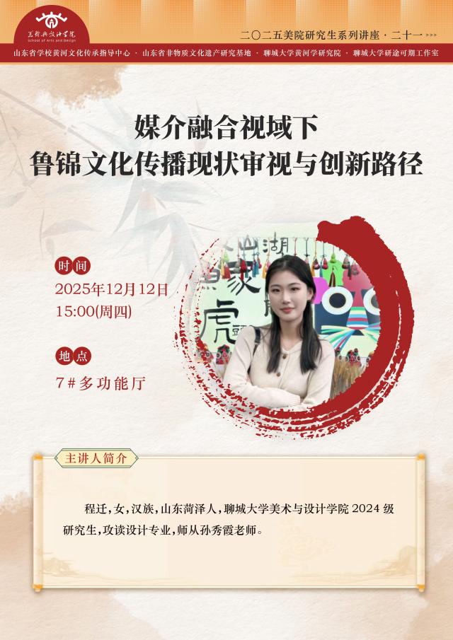 主讲地点:美术与设计学院 — 多功能厅