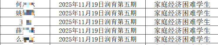 我院5名家庭经济困难学生参加润育梦想第五期培训活动 作者:么翠红 来源:美术与设计学院 发布时间:2025-11-19 阅读次数: 2025年11月19日我院5名家庭经济困难学生参加润育梦想第五期培训活动,名单如下: (审核 孔德滕)